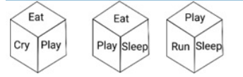 | Q.9 Six words Eat, Cry, Play, Sleep, Run and Bath are written on different faces of a dice. Three positions of this dice are shown in the figure. Find the word on the face opposite to Eat. ![]() 1. Play 2. Cry 3. Sleep 4. Run |